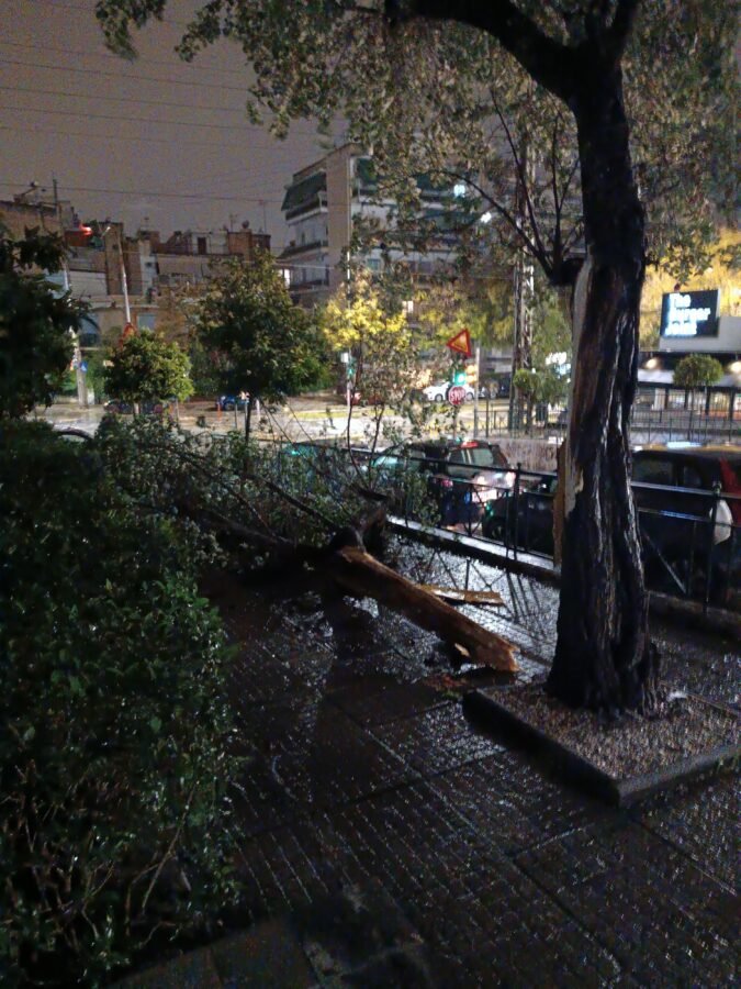Αναστάτωση προκλήθηκε το πρωί της Πέμπτης στη Νέα Σμύρνη, όταν μεγάλος κορμός δέντρου έπεσε σε πεζοδρόμιο εξαιτίας των έντονων καιρικών φαινομένων που συνοδεύουν την κακοκαιρία Κακοκαιρία Erminio.