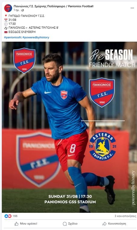 Ο Πανιώνιος ανακοίνωσε την διεξαγωγή φιλικής αναμέτρησης με τον Αστέρα Τρίπολης Β’, την Κυριακή 31 Αυγούστου στις 17:30, στο γήπεδο της Νέας Σμύρνης. Το παιχνίδι εντάσσεται στο πλαίσιο της καλοκαιρινής προετοιμασίας των «κυανέρυθρων».